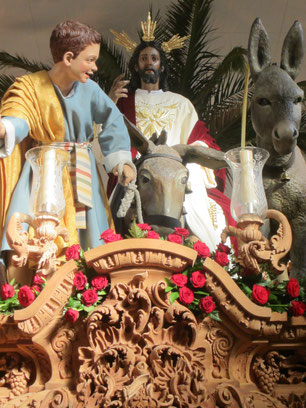 Fue fundada en el año 1974 en el colegio de San Luis Gonzaga, siendo su primer hermano mayor Alejandro Güelfo Álvarez. En años posteriores se traslada a su actual sede canónica, la Parroquia del Carmen y San Marcos. En 1978 se realizan los primeros estatutos que serían reformados seis años después. Una gestora se hace cargo de la cofradía en 1982, dicho año no puda realizar el recorrido procesional por diversas circunstancias. En 1984 salen por primera vez los dos titulares de la cofradía, ya que se incorporó al cortejo el paso con la imagen de Nuestra Señora de la Entrega. La hermandad decide en el año 1990 cambiar la salida de la mañana a la tarde del Domingo de Ramos. Al año siguiente el paso de Nuestro Señor Jesucristo deja de procesionar sobre rueda y lo realiza sobre costaleros. Un hecho histórico se produce en el 92 con la incorporación de un palio de malla en hilo bordado para el paso de Nuestra Señora de la Entrega. En el año 1993 la hermandad sometió al paso de cristo a una serie de remodelaciones y mejoras realizada por los propios hermanos, como nuevos respiraderos e incorporación de una palmera. En 1995 se acometen las obras de ampliación de la puerta de la Parroquia del Carmen y San Marcos para poder efectuar la salida de sus pasos desde el interior del templo y no desde el patio como realizaba anteriormente. En el 2000 se amplían las andas del señor para la incorporación futura de imágenes secundarias para el misterio y se estrenas 4 candelabros de madera de caoba tallada.2? Durante el año 2008 la hermandad efectuó una serie de actos conmemorando el XXV aniversario de las salidas procesionales de la titular mariana. El jueves 12 de enero de 2012 la hermandad vota por unanimidad tres proyectos: La restauración de la imagen de Ntra. Sra. de la Entrega, la realización de un nuevo paso de misterio y la recuperación del proyecto del palio. |
